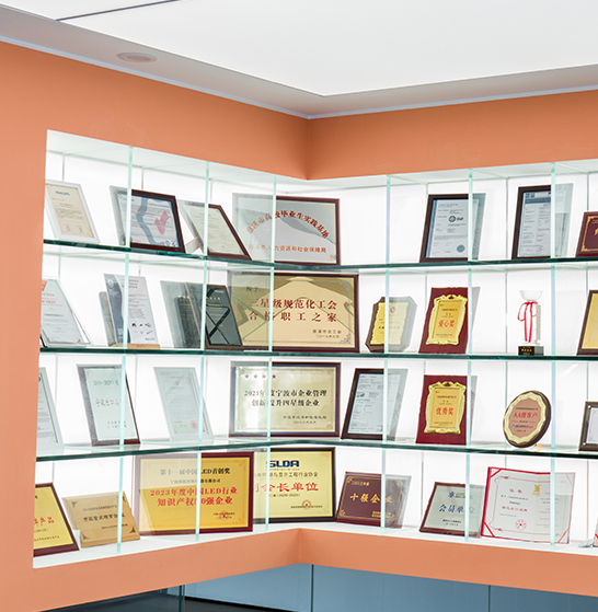 A vállalat a következő tiszteletbeli címekkel rendelkezik: Zhejiang tartomány Tudományos és Technológiai Kis- és Középvállalkozásai, Zhejiang tartomány Felhőalapú Vállalkozásai, Zhejiang tartomány Posztdoktori Munkaállomása, Ningbo város „Specializált és Új” Vállalkozásai, Ningbo város Mérnöki Technológiai Központja, Ningbo város Tőzsdei Tőzsdén Jegyzett Vállalatai, Cixi város Zöld Gyára és Cixi város 50 legnagyobb hektáronkénti kibocsátású vállalata. 123 különféle típusú szabadalommal rendelkezik, a Kínai Világítási Készülékek Szabványosítási Bizottságának tagszervezete, részt vesz 2 nemzeti szabványban és 7 csoportszabványban, TUV és SGS tanúsító laboratóriumokkal rendelkezik, valamint közös kutatási és fejlesztési központot hozott létre az intelligens világítási termékek számára, és egy „ipari-egyetemi-kutatási” gyakornoki bázist a Sanghaji Alkalmazott Műszaki Egyetemmel.